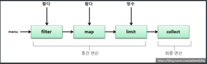 중간 연산의 연속으로 내부반복
