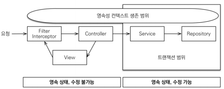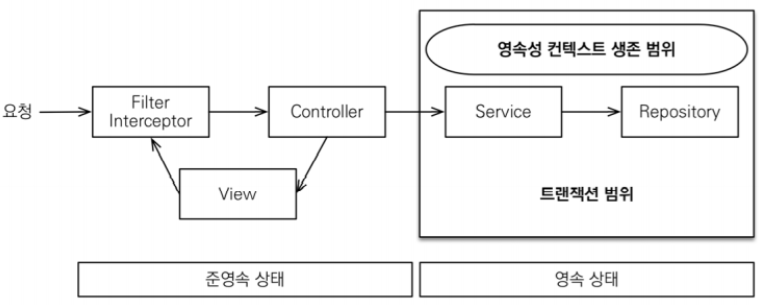 - OSIV 전략은 트랜잭션 시작처럼 최초 데이터베이스 커넥션 시작 시점부터 API 응답이 끝날 때 까지 영속성 컨텍스트와 데이터베이스 커넥션을 유지한다. 그래서 지금까지 View Template이나 API 컨트롤러에서 지연 로딩이 가능했던 것이다.