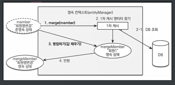(DB에 한 번 저장되었다가, 다시 만들어진 식별자(id)가진 엔티티 포함)
