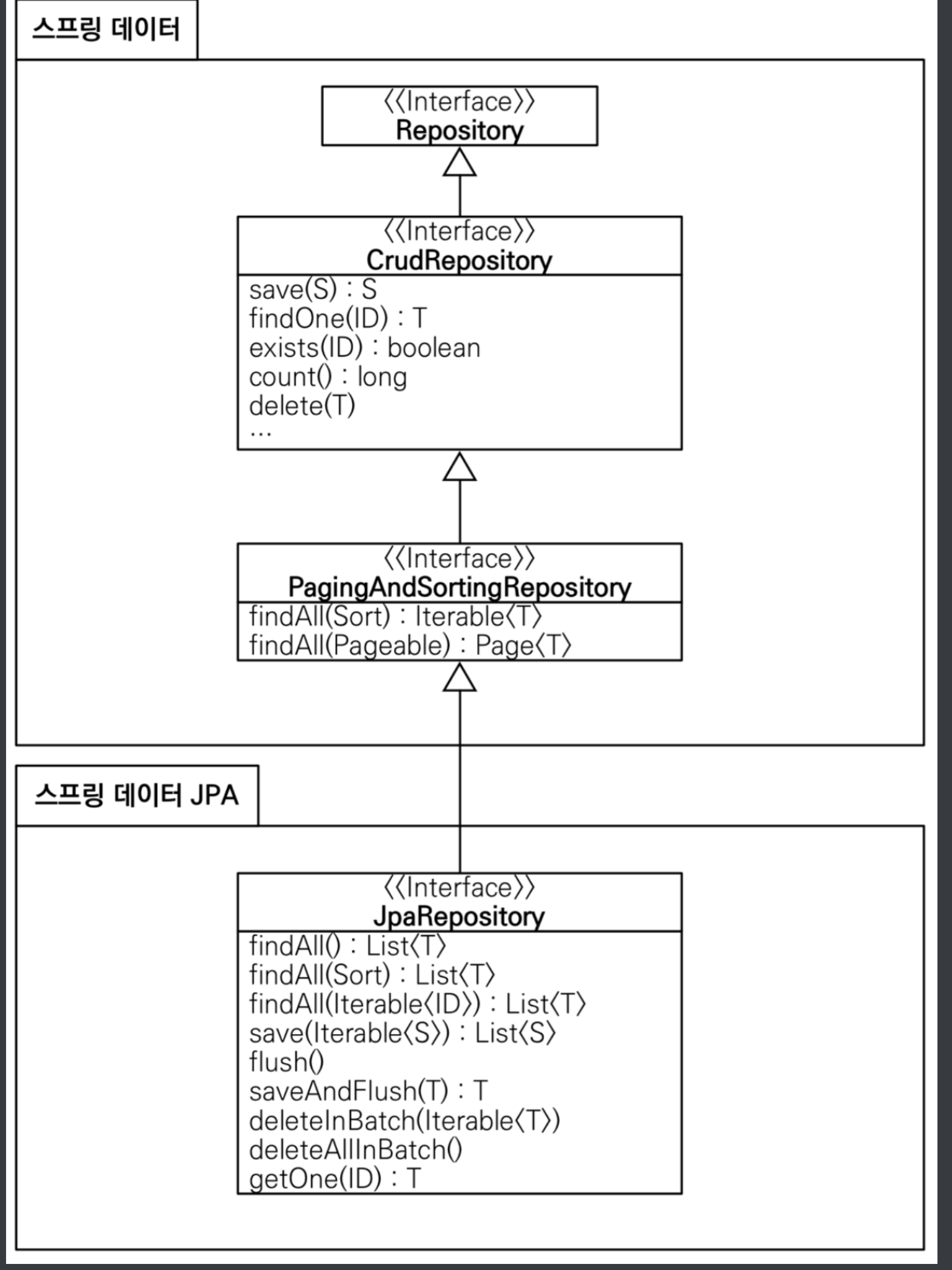 - spring-data-jpa가 해당 인터페이스들을 확인하고 프록시로 구현체를 빈에 등록하기 때문
